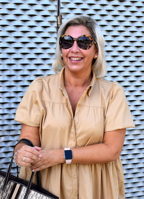 Hoy os muestro un look en el que el protagonista es un vestido con volumen en color tostado; el estilismo es de la semana pasada, ya que llevamos varios días con mucho aire y bastante frío para la época en la que estamos, no he podido publicarlo antes, os lo mostraré en otro outfit más otoñal, simplemente cambiandole los complementos.